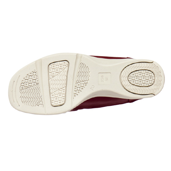 当たりやすい親指の付け根部分をふくらませた、ゆったり5E幅の足型を使用。