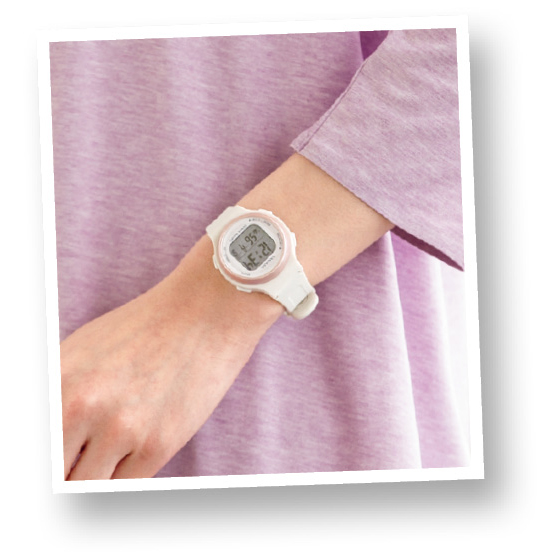 見やすい腕時計型で、失くしにくく、うっかり洗濯の心配もありません。歩行距離や消費カロリーもひと目でチェックできます。