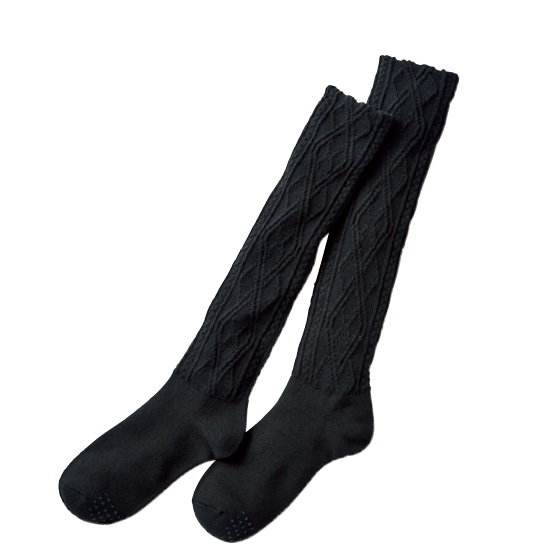 重ね履きのような暖かさ!ふんわり2重編みのハイソックス。