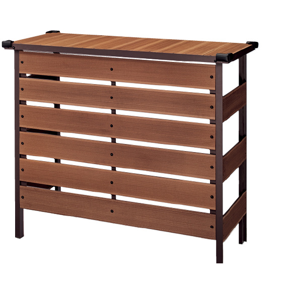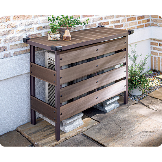 雨風や直射日光から室外機を守り、天然木のようなおしゃれな風合い。