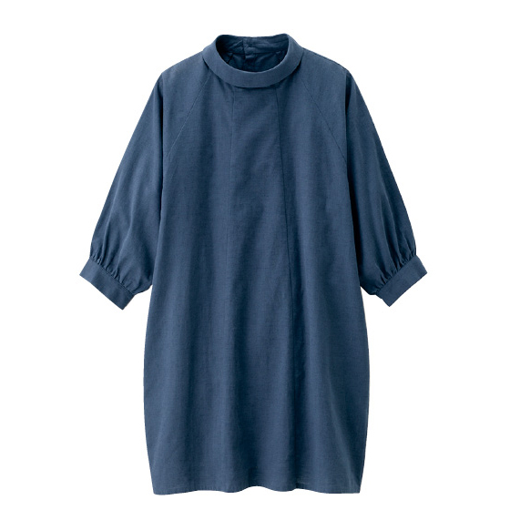 衿元をすっきり見せてくれるロールカラーと、ドルマンスリーブがモダンでやさしい印象に。後ろ開きのボタン使いがかわいいアクセントに。