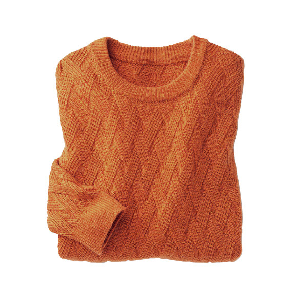 ウール混だから暖かく、しなやか。こだわりの編み柄で、1枚でもカジュアルに。