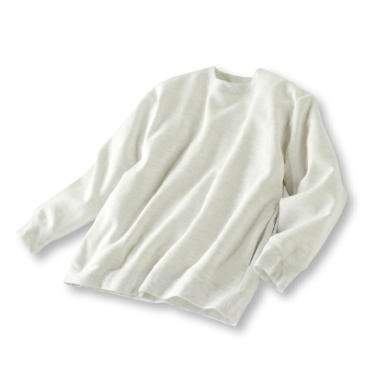 ●素材:綿48%・ポリエステル48%・ポリウレタン4%(ニット、針抜きダンボールニット・ヨコのび)、リブ部分=綿95%・ポリウレタン5%(ニット、テレコ)