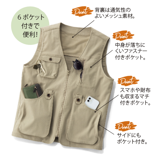 お出かけに必要なものがポケットに収まるので、バッグ代わりに使えて重宝します。