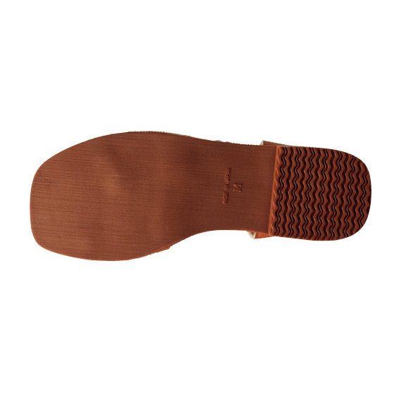 甲裏は心地よいフェルト素材。足元をすっきり見せてくれるクロスデザイン。軽くて足裏にフィットする、ふかふかのフットベッドを使用。バックル裏に隠しゴム入りで着脱がスムーズ。