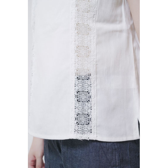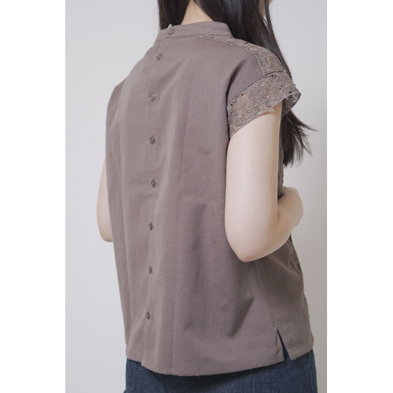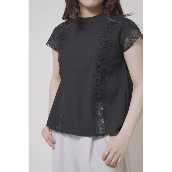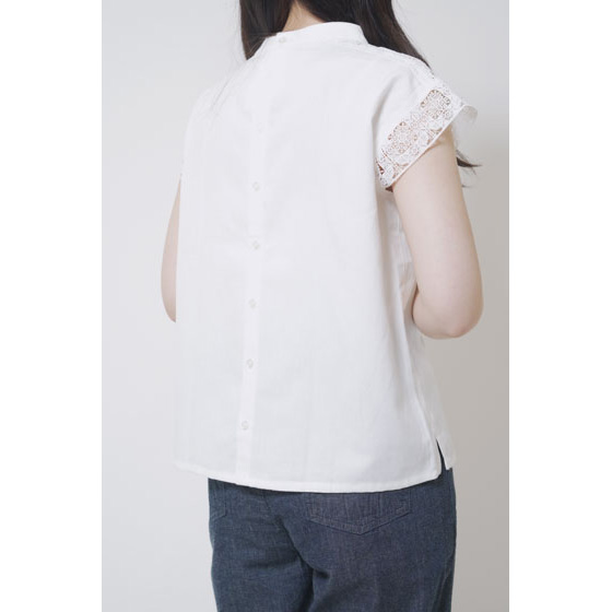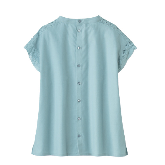 ほんのり透けたレース使いが、なんとも涼やか。甘い雰囲気になりすぎない幾何学模様で、夏の装いに上品なアクセントを加えてくれます。さらりとしたリネン混の身生地はほどよいハリ感があり、1枚着るだけできちんと見えも。体の線をカバーするシルエットにもこだわりました。