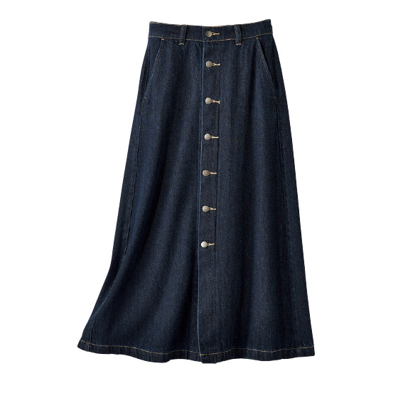 生地内部に空気の層ができる特殊な織りで、ふんわり暖かなデニム生地に。軽くてはきやすく、シルバーボタンが印象を引き締めてくれます。※春秋冬におすすめです。