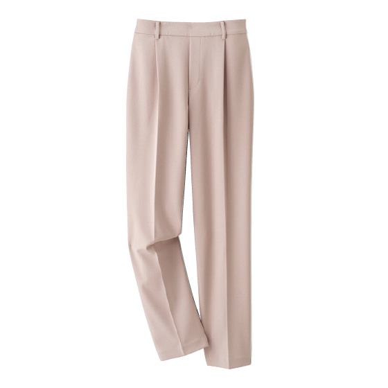 前後バランスや体とパンツの空間を丁寧に調整して、大人が快適にはける設計です。前タックでおなかをカバーして、センタープレスが脚長見せ。ゆとりの腰回りでひざ下は細く、すっきり映えるテーパード。※着用シーズンは通年です。