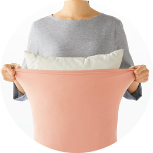 Tシャツみたいに肌触りのよい綿混ニット。筒式でよく伸びるから簡単きれいに装着。