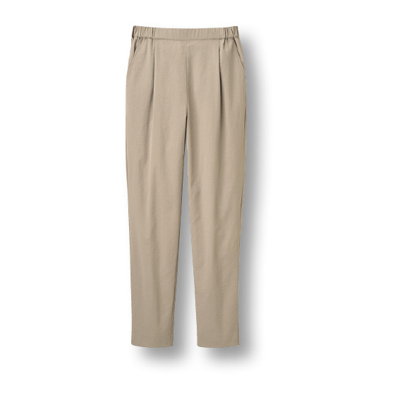 麻混のワッシャー加工でシワが目立ちにくく、すっきりスリムなテーパード。日差し、暑さ、透けを解決して、洗濯もラクな機能派。※春夏秋、3シーズン着用できます。
