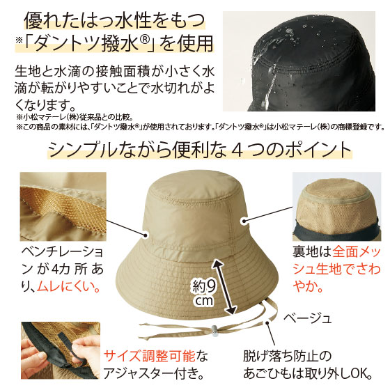 突然の雨でも安心な、ダントツに水を弾く帽子です。UVカット機能付きだからオールシーズン活躍します。アウトドアはもちろん、お買い物やお散歩にも忘れずに。たたんで持ち歩けるのも便利です。