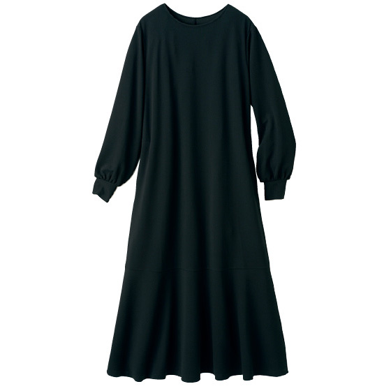 黒。ぽわんとした袖、裾のマーメイド感。魔女っぽい。