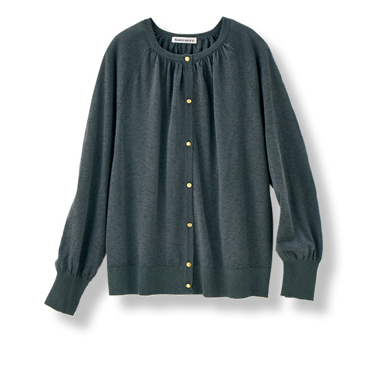 残暑にも涼しげな秋コーデが楽しめるシアーニットの薄手カーデ。ネックと袖口にギャザーを入れて、やさしい丸みの出るシルエットです。パンツにスカートにワンピにも頼れる着回し力。