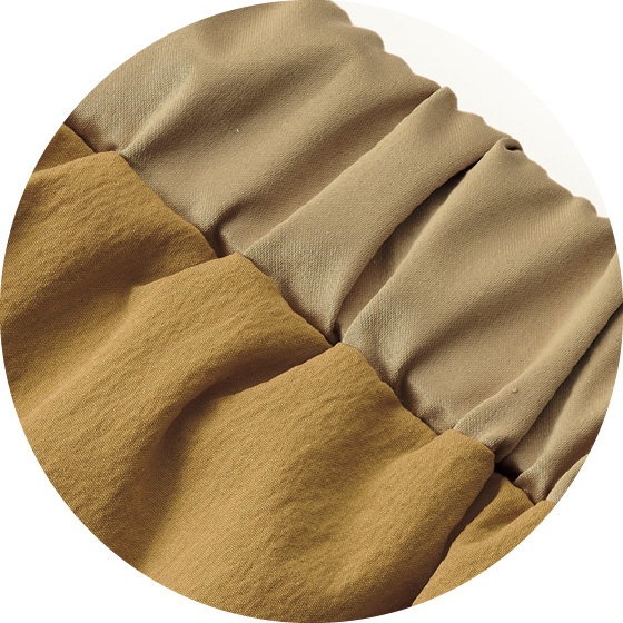 ●素材:ナイロン90%・ポリウレタン10%(織物、平織・タテヨコのび、はっ水加工)、別布部分=ポリエステル95%・ポリウレタン5%(織物、サテン)