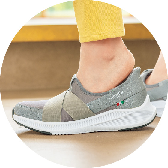 手を使わずスルッと履けて、クロスバンドでしっかりホールド。