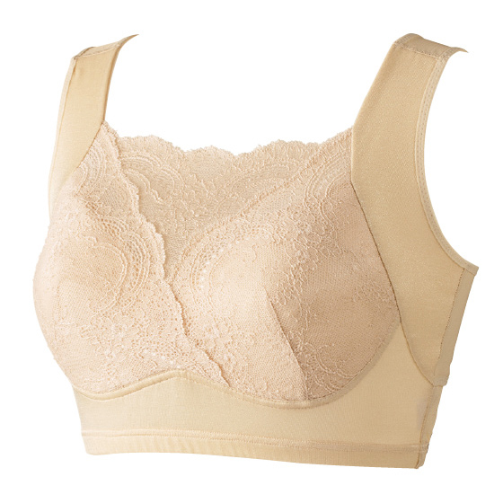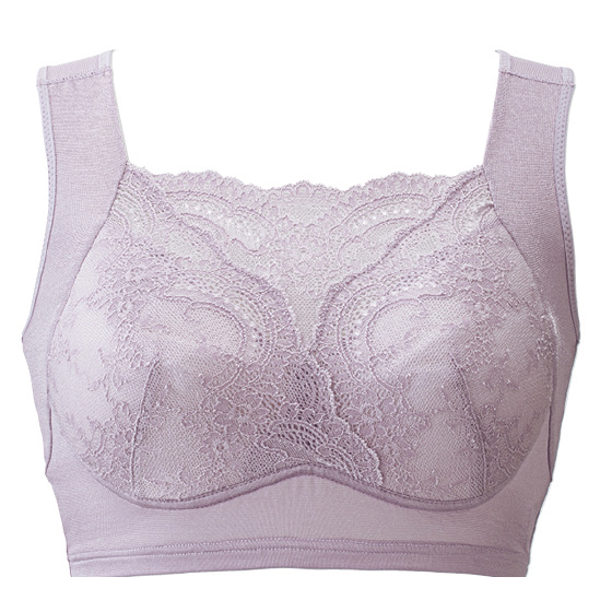 谷間が見えにくい胸元のレースデザイン。身生地はやわらかな肌当たり。