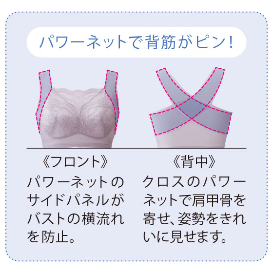 ●素材:身生地=ナイロン55%・ポリウレタン20%・綿20%・シルク5%(ニット、サテンネット)、レース部=ナイロン・ポリウレタン、パワーネット部=ナイロン・ポリウレタン、カップ部=ポリエステル100%(吸水速乾加工)