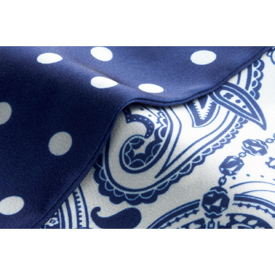 ●素材:プルオーバー=綿100%(ニット、天竺、液体アンモニア加工)、スカーフ=ポリエステル100%(織物、朱子織)