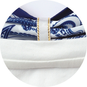 なめらかな光沢とソフトな着心地の綿100%素材。ふんわりと体を包むAラインシルエットの後ろにはスカーフを通せるラメ入りテープ付き。スカーフは表裏柄違いなので、アレンジ幅がぐんと広がります!