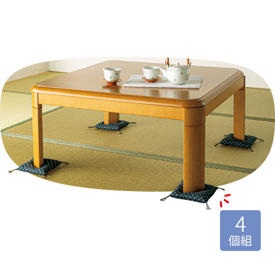ちょこんとかわいい、小さな座布団。畳やフローリングが傷む前に、座卓の脚に敷いてあげましょう。