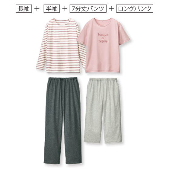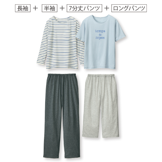 Tシャツみたいに肌触りよくラクちん。寝汗をよく吸って、お洗濯後も乾きやすい。パンツには、おなかがラクでねじれにくいソフティーゴム使用。