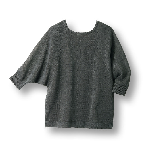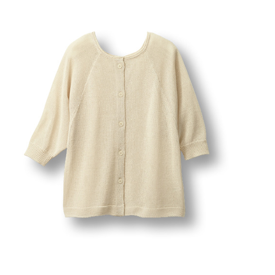 サラッと軽くてドライタッチ、麻風の涼しさがある夏ニット。ボタンを留めても軽くはおっても前後を変えても着られて、夏のコーデが広がります。
