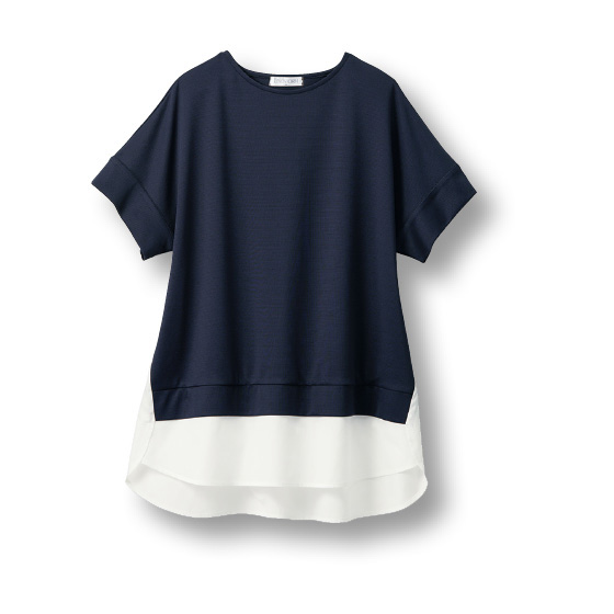 適度なハリ感のカットソー生地とシャツ素材の組み合わせ。