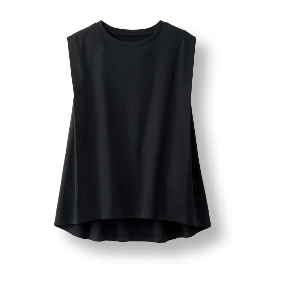袖口前後のタックが、気になる二の腕やわきをほどよく隠すデザインで、腕を出しすぎず、見えすぎません。特殊加工でシワになりにくい!ハリと光沢感のある上品な素材は、繊維によじれを改質する加工済み。