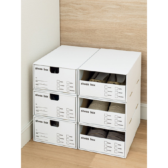 引き出しの前後を入れ替えると、中が見やすい2WAY仕様。ゆったりサイズで、靴をすっきり収納できる。