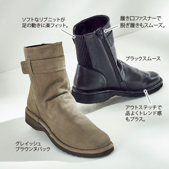 くたっと自然なドレープ感であか抜け。やわらか牛革&ニットのブーツ。