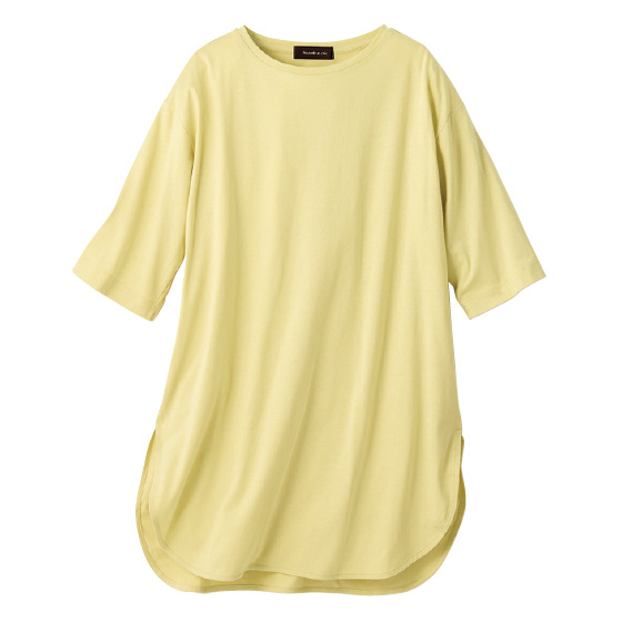 オーガニックの綿素材。1枚でも重ね着でも活用度の高いチュニックワンピです。そのままストンと着るのはもちろん、ベルトでウエストマークしてもOK。