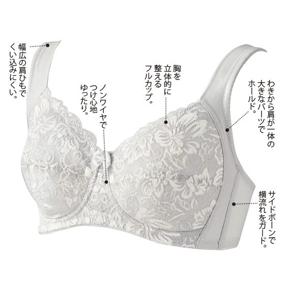 ノンワイヤーで肌触りがよいです。肩ひもが短いのとアンダーベルトが頼りないのが惜しいですね。ぜひ改良してほしいです。ブラのカップ形状も横の切り替えが目立ちます。