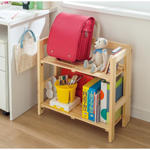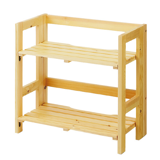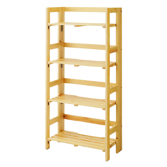 天然パイン材のシンプルデザイン。使わないときはたたんで部屋の隅にしまえます。棚板をパタンと立てて長い物を収納。