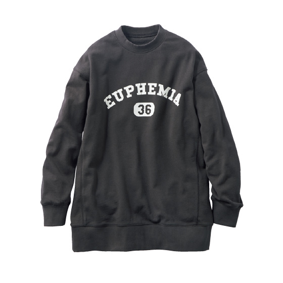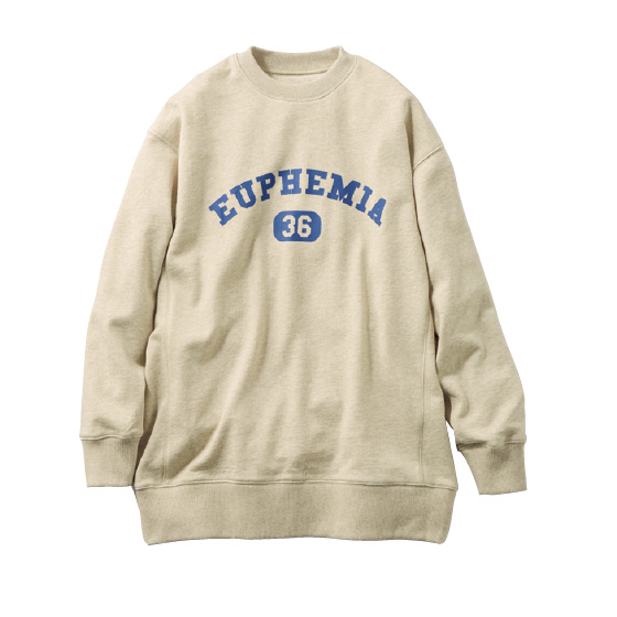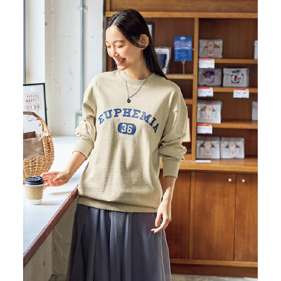 旬カジュアルが決まるカレッジ風ロゴ入りトレーナーを、コットンリネンの裏毛素材でつくりました。