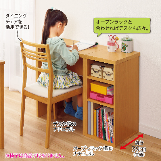 ●サイズ:デスク=幅59.5(幅60)・89.5(幅90)×奥39×高70cm、オープンラック=幅31(幅30)・59.5(幅60)×奥39×高70cm