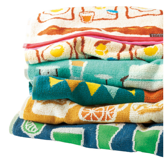 個性香るポップな5柄をセットに。太番手の綿糸を使い、高密度に織り上げているので、ボリューム感があってしっかりとした拭き心地。