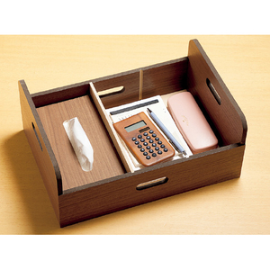 ソファやベッドサイドの収納にも活躍。サッと取り出しやすいトレー付き。トレーは持ち穴付きで移動もラクラク。ティッシュボックスもぴったり収まります。