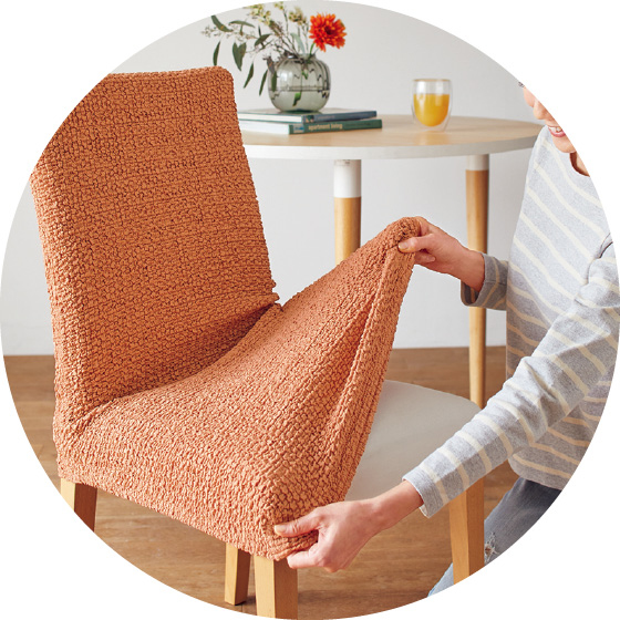 取り付けラクラク。タテヨコに伸びる生地で取り付けがスムーズ!