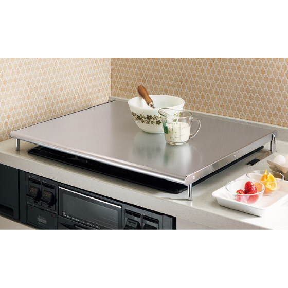 コンロの上に広いスペースができてとても便利です。また、お料理直後にカバーを下ろすことで、猫が上がっても安心できるようになりました!←これが主目的