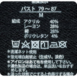 ●素材:アクリル40%・レーヨン28%・綿28%・ポリウレタン4%(ニット、ミニ裏毛、吸湿発熱・吸放湿素材)、肌側(裏)=綿100%