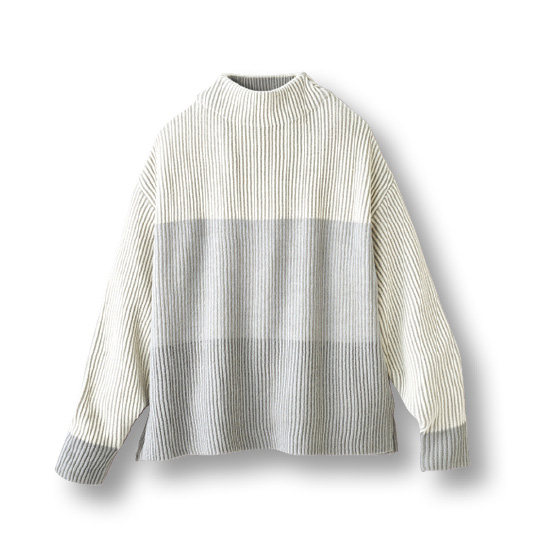 淡いグレートーンが上品な、着れば映える主役ニット。