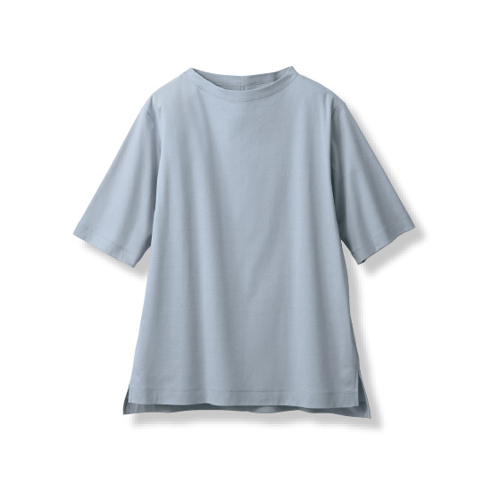 気になる首元や二の腕を隠しながら、日差しや冷房からもカバー。光沢感のあるこだわりコットン使いで、大人に着映えるTシャツです。透けにくいので1枚着も安心。二の腕をカバーする5分袖。後ろシーム入りで背中もすっきり。