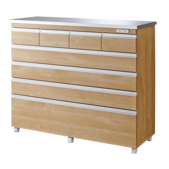 水・熱に強いステンレス天板。汚れはサッとひと拭きできれいに。後ろ姿もスッキリ。間仕切りに使える。移動がラクでお掃除しやすい。