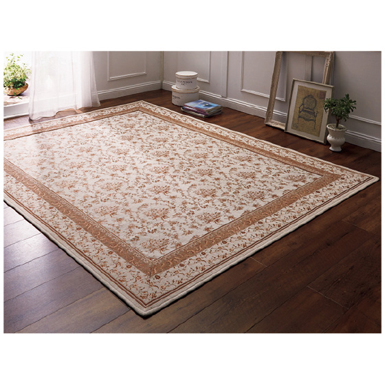 ベージュを注文、部屋に自然に馴染んでいいかんじです。以前は夏冬で取り替えしてましたが、これは一年中使えます。ホットカーペットの下敷きの上に載せて使ってます。