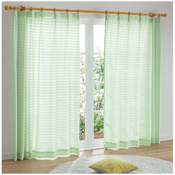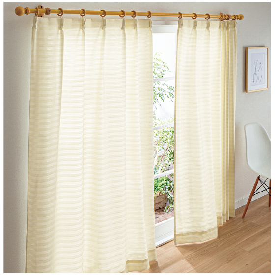 遮熱カーテンにありがちなギラつきをなくし、レースのふんわり感を生かしました。お部屋に涼を運びます。テイジンの遮熱性繊維「エコリエ(R)」を使用した生地を2重に製織。遮熱効果が高いので、外部の温度を室内に伝えにくく、室内の温度を外部に逃がしにくくします。柄をずらして製織しているため、視線もしっかりブロック。昼も夜も外から室内が見えにくい仕様だから、窓を開けても外からの人目を気にせず過ごせます。紫外線を90%以上カット。