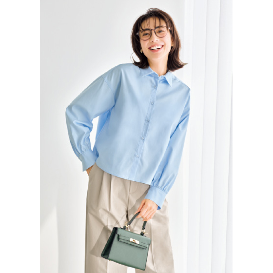 しっかりした織りなのに、柔らかで通気性もよいオックス生地。春に気持ちよく着られる素材に、防シワ機能をプラスした旬の短め丈シャツです。コットン100%でも洗濯ジワを抑えるので、洗って乾いたらそのまま着るだけ。はおり使いもできて今どきコーデにヘビロテです。