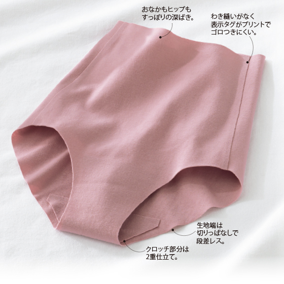 縫い目をなくした平らな接着仕様でやさしい肌当たり。