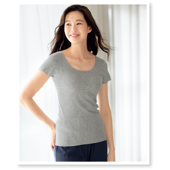 年齢を重ねていくにつれ、実感する体への負担やストレスを軽くしたい。そんな思いに応えるグンゼの完全無縫製シリーズ。チクチク感などの原因になりやすい縫い糸やタグがないのはもちろん、アンダーゴムレスで締め付け感のないブラカップ仕様。至極シンプルなつくりながら着心地がいいのはグンゼが誇る長年のノウハウがあってこそ。オーガニックコットン混のやさしい肌触りで、体をリラックスさせたい方に寄り添います。