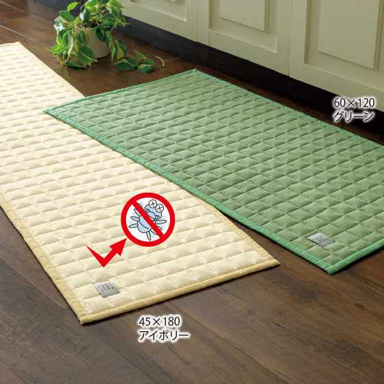 ●素材:表側=綿100%(はっ水加工・抗菌防臭加工)、中材=ポリエステル100%(抗菌防臭加工)、裏面=不織布張り(すべりにくい加工・防ダニ加工)