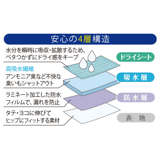 優れた吸水力で、尿漏れのお悩みに対応。
